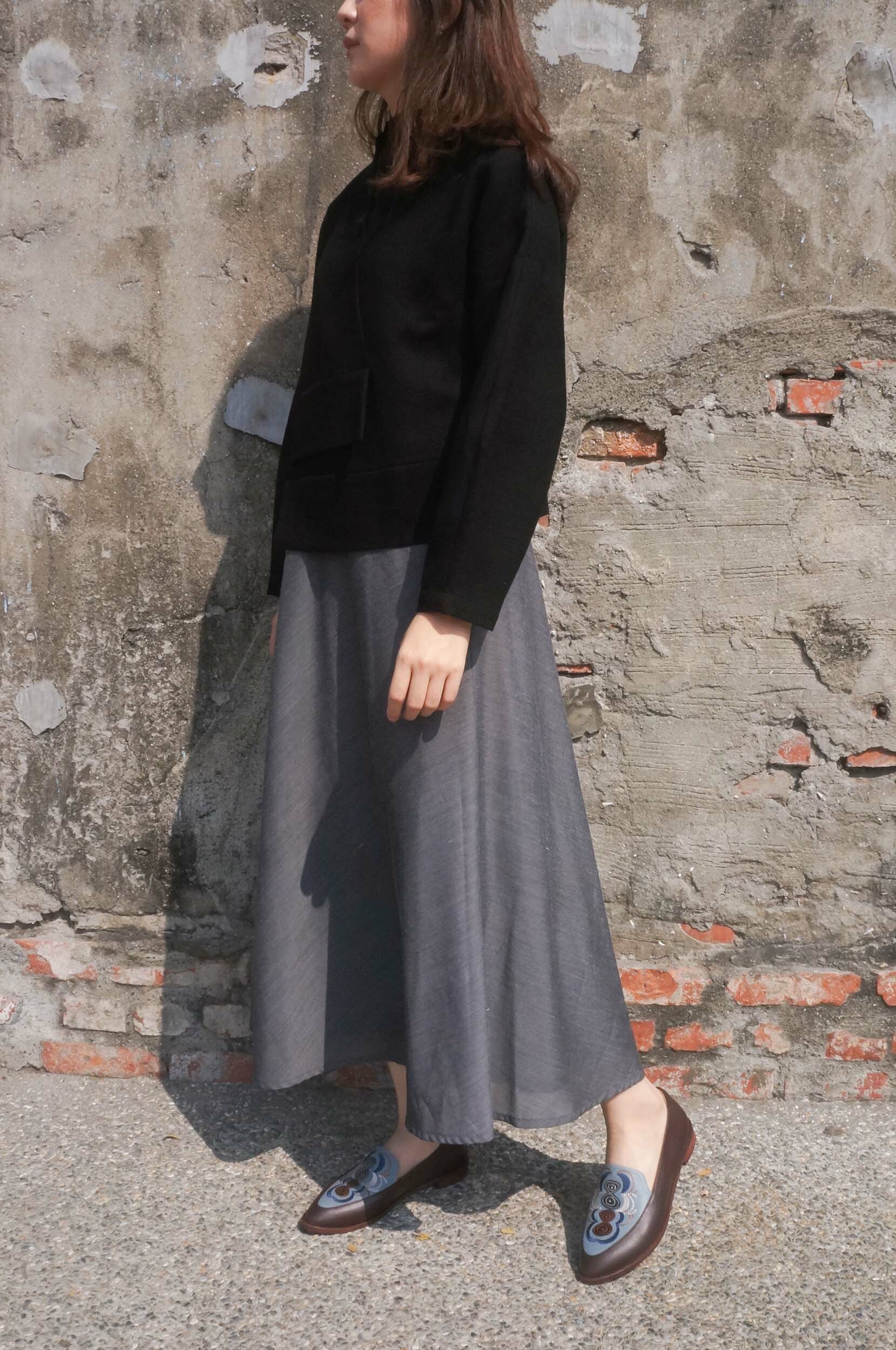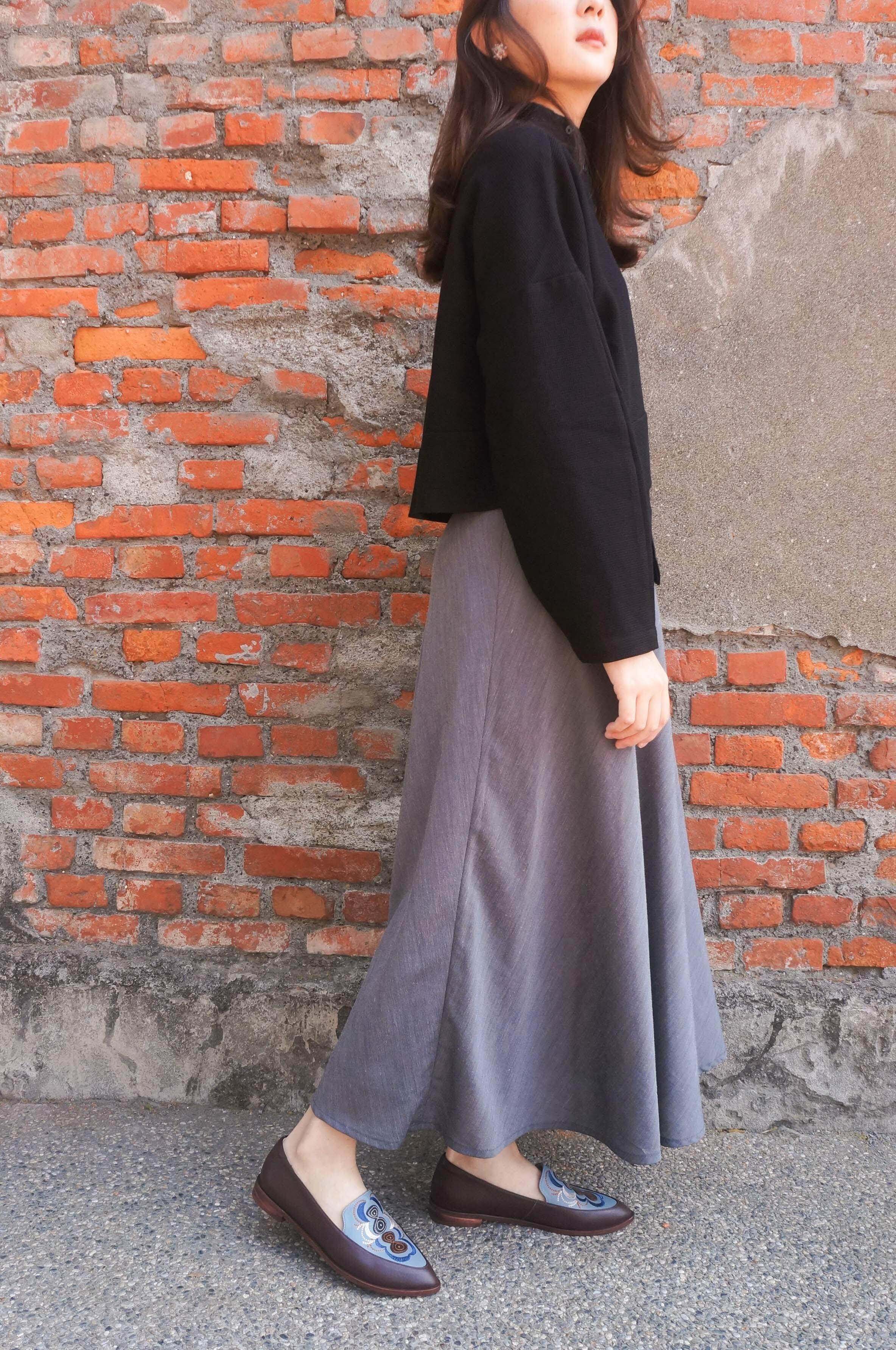 刺繡樂福鞋|蓓蕾之舞 (灰藍x深咖)