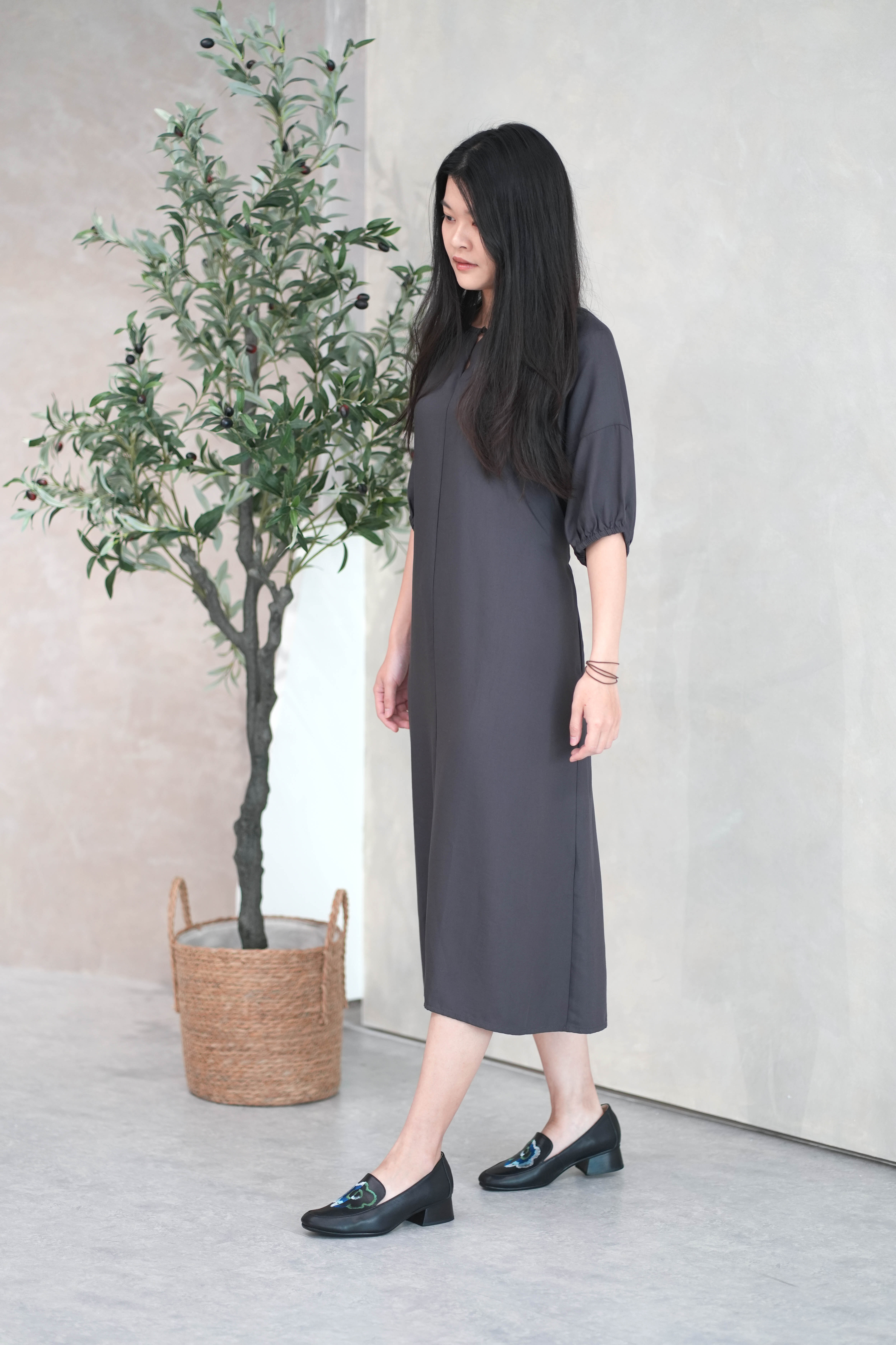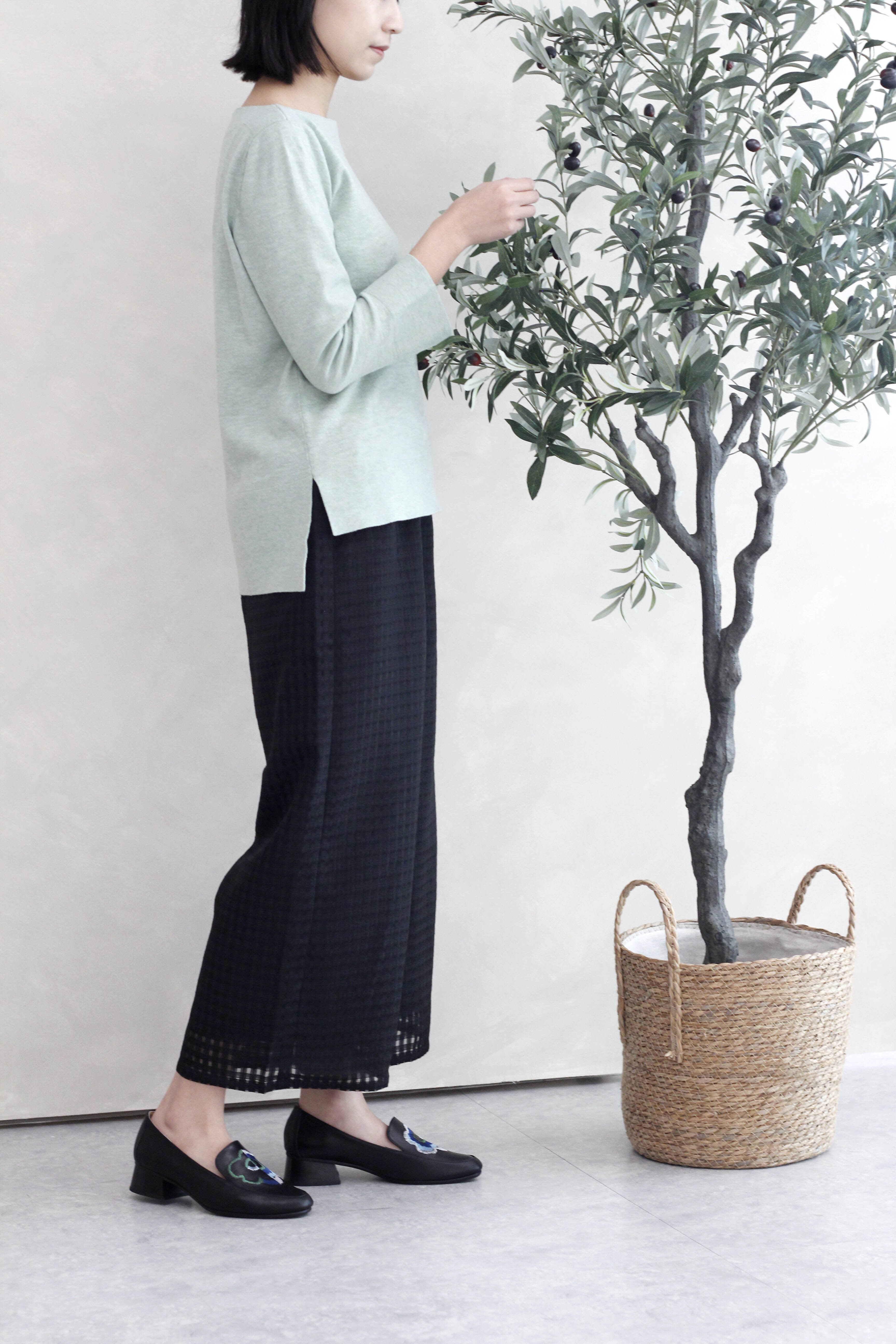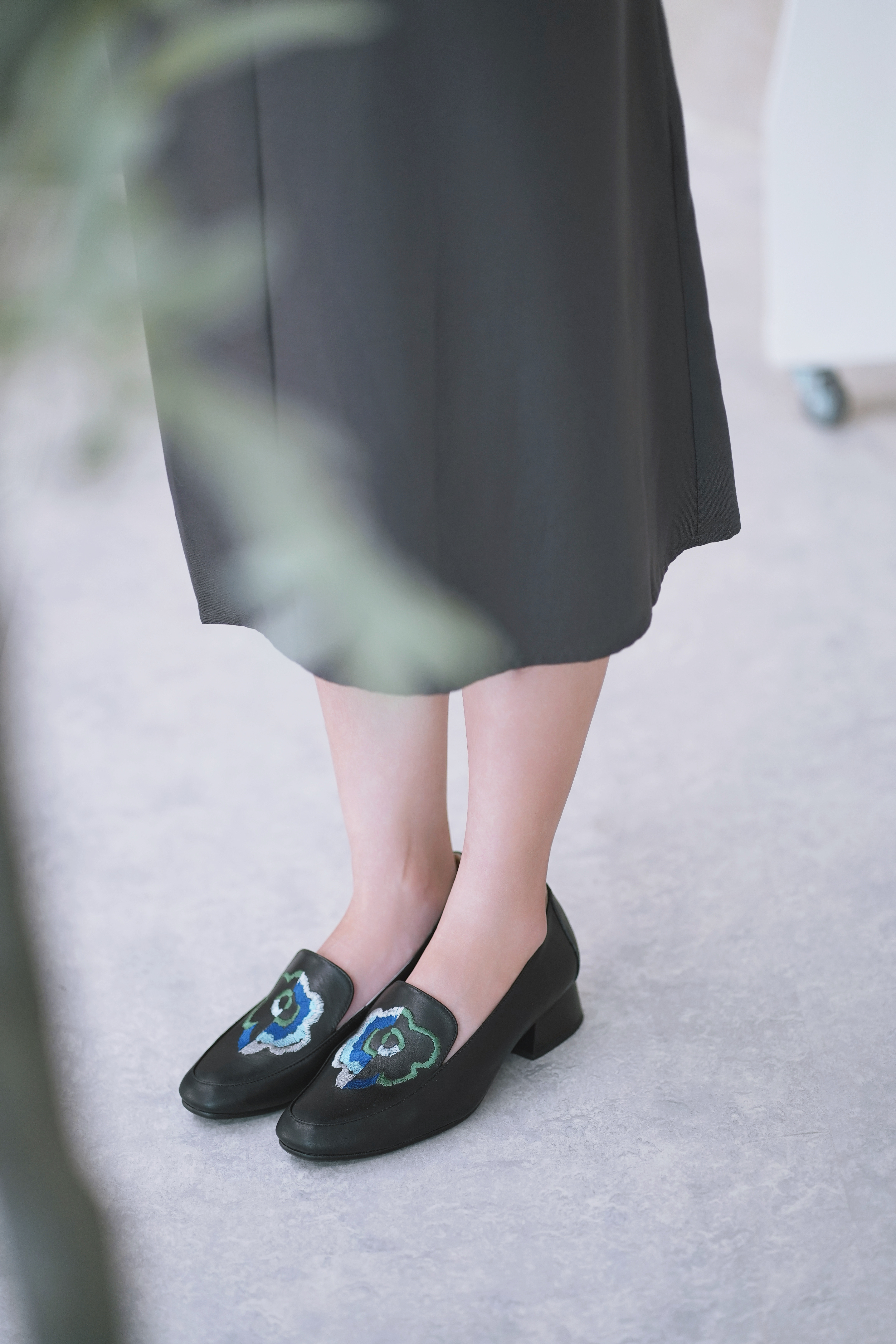 實木低跟樂福鞋|綻放花園 (黑)