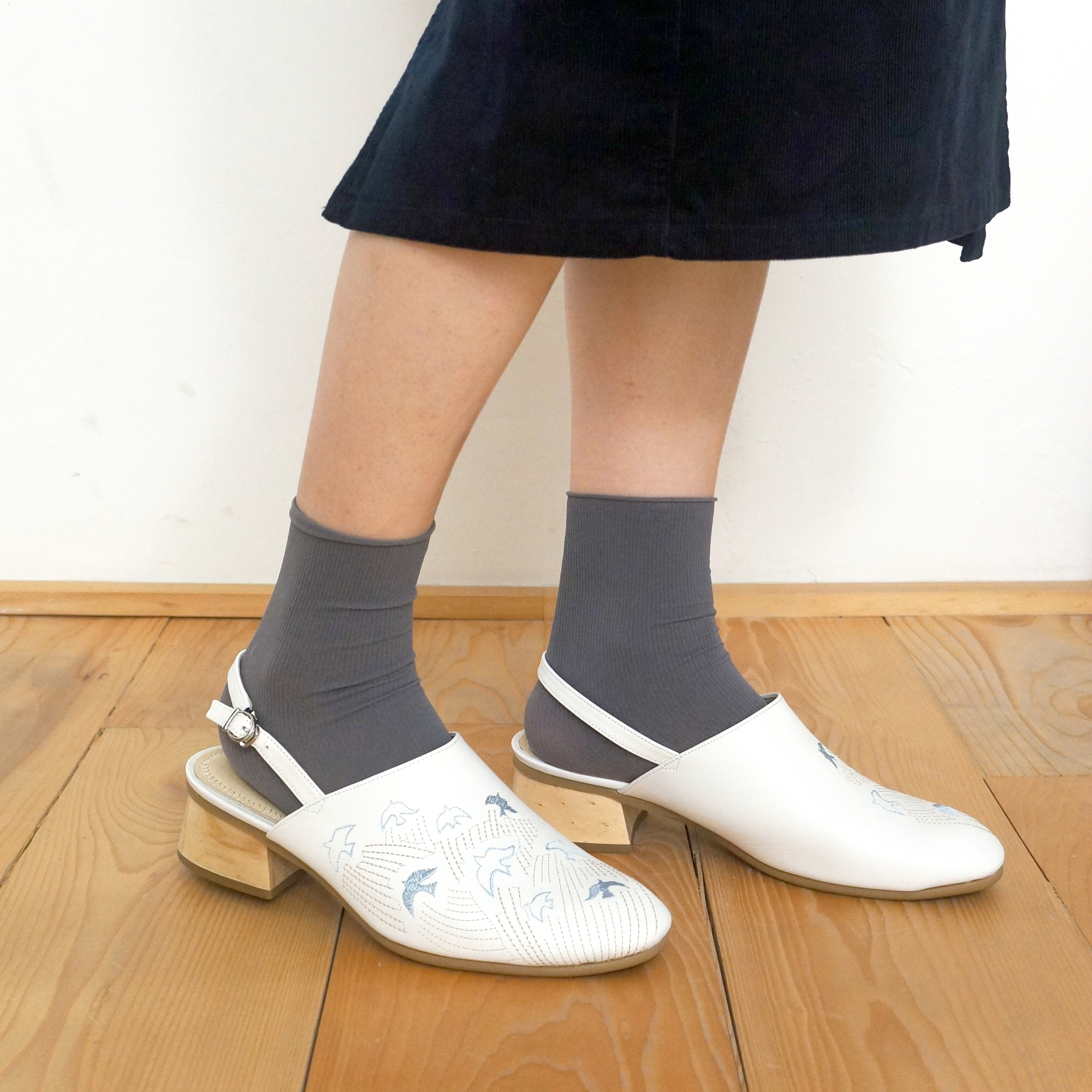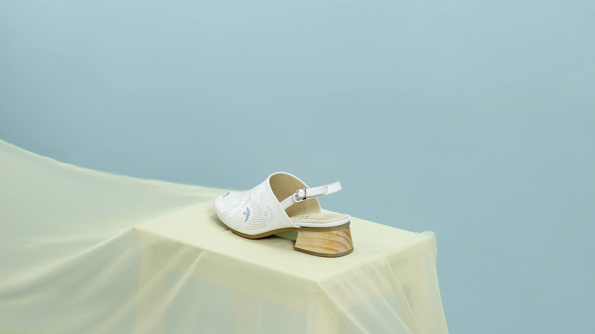 刺繡木跟穆勒鞋|自由飛翔(雲朵白)