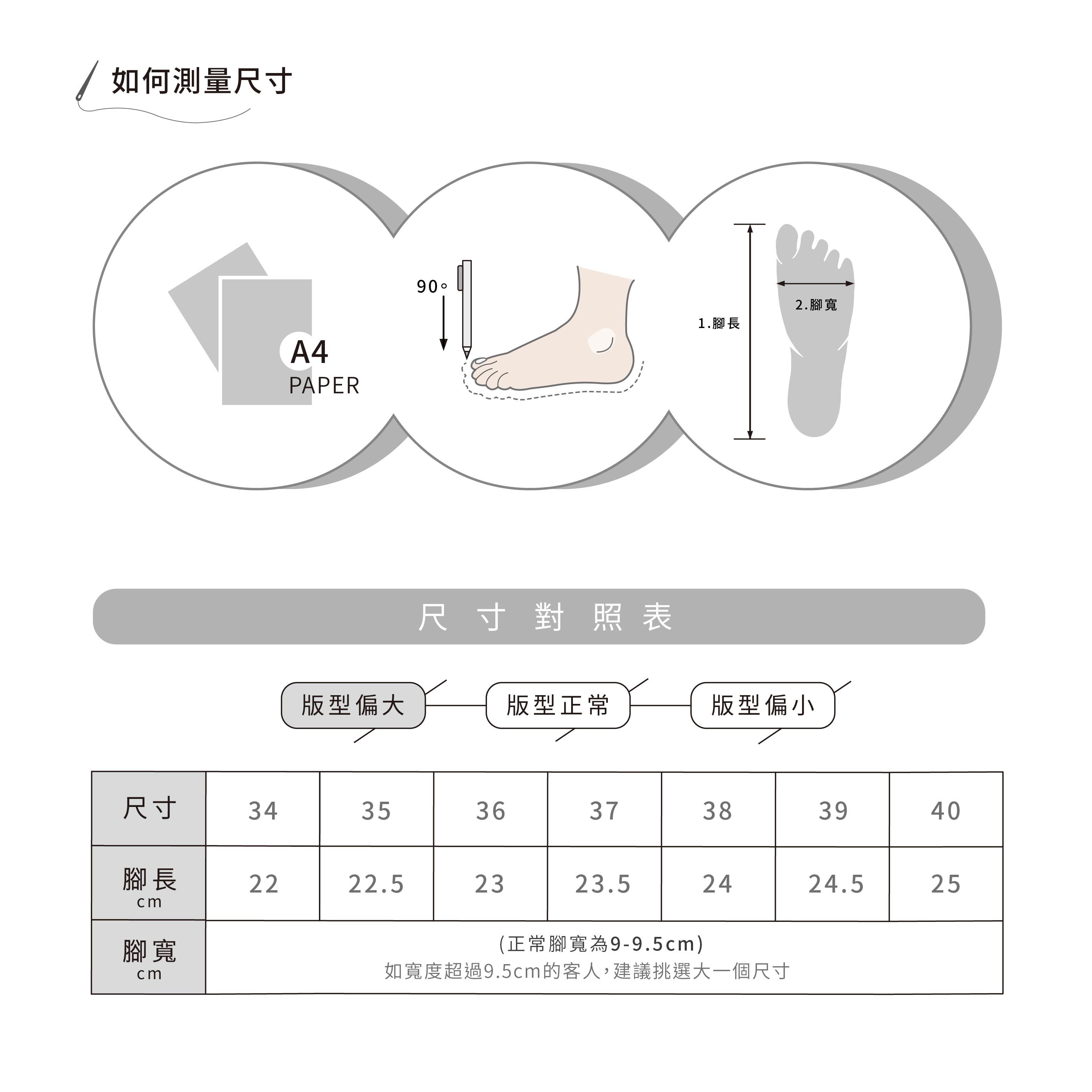 若是偏寬的腳型,視實際狀況,增加一個尺碼。
